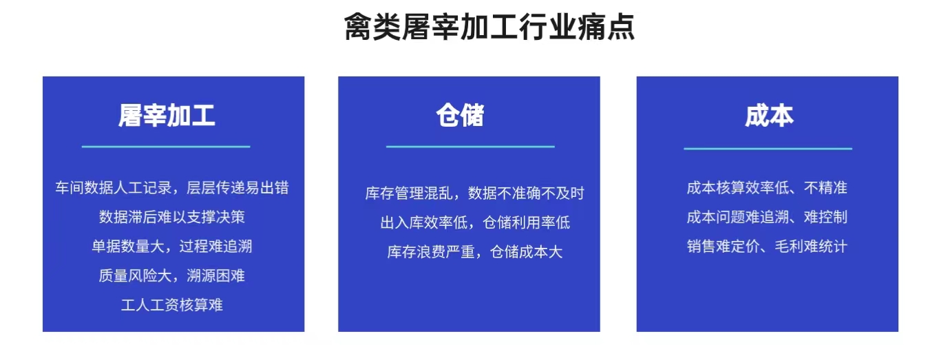 建立高效的全程數(shù)字化管理平臺,屠宰加工流程標準化。對各環(huán)節(jié)進行有效監(jiān)控和分析,減少各環(huán)節(jié)的漏洞,降低廢品率和能耗,降低企業(yè)管理成本。